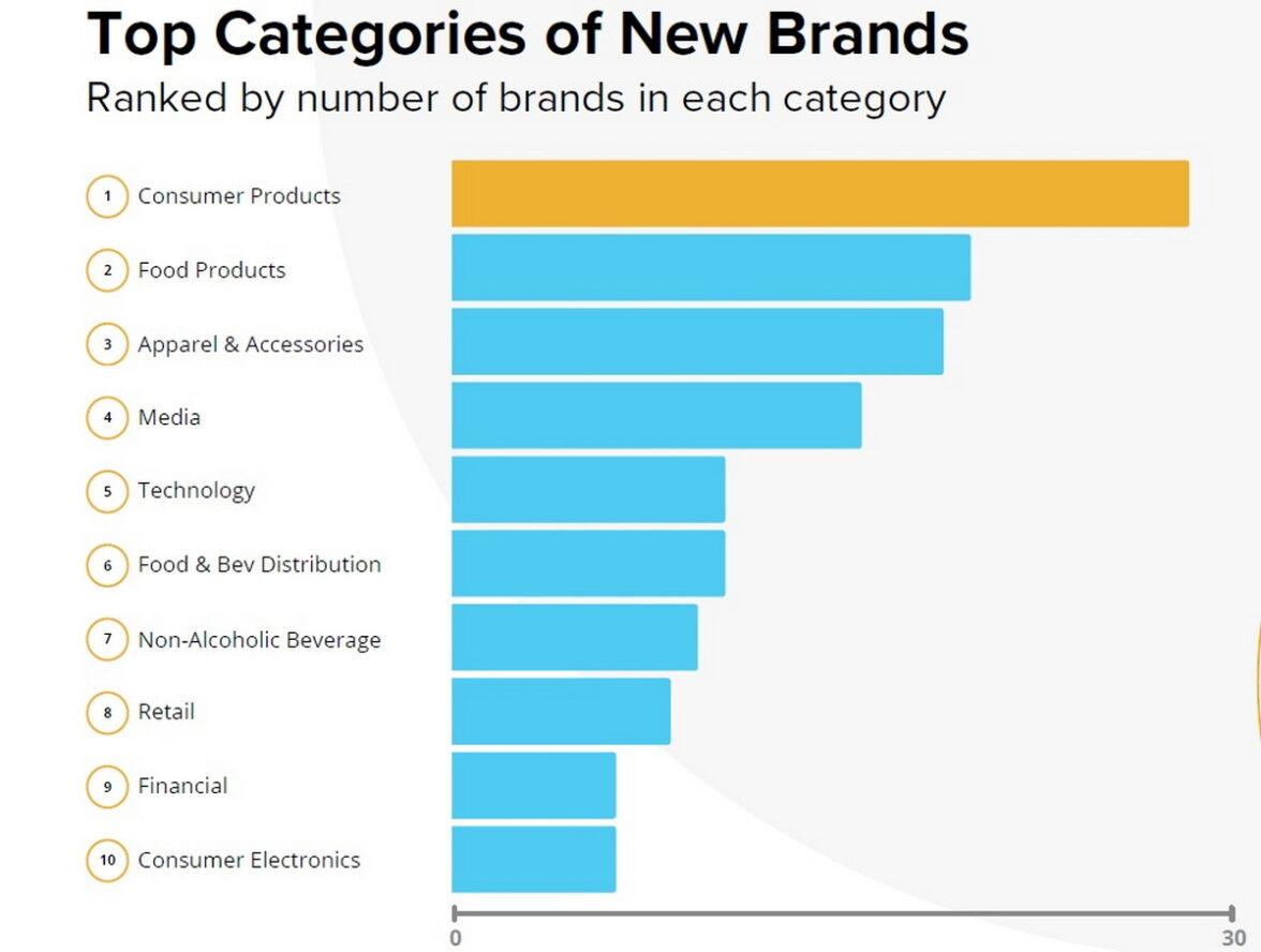 По числу сделок, заключенных отдельным брендом, лидируют L`Oreal и Walmart (по шесть у каждого). За ними следуют Amazon Prime и Airbnb (по пять сделок у каждого). По четыре — у State Farm, Sony Pictures Entertainment, SHEIN, Samsung, Pepsi и Hulu.