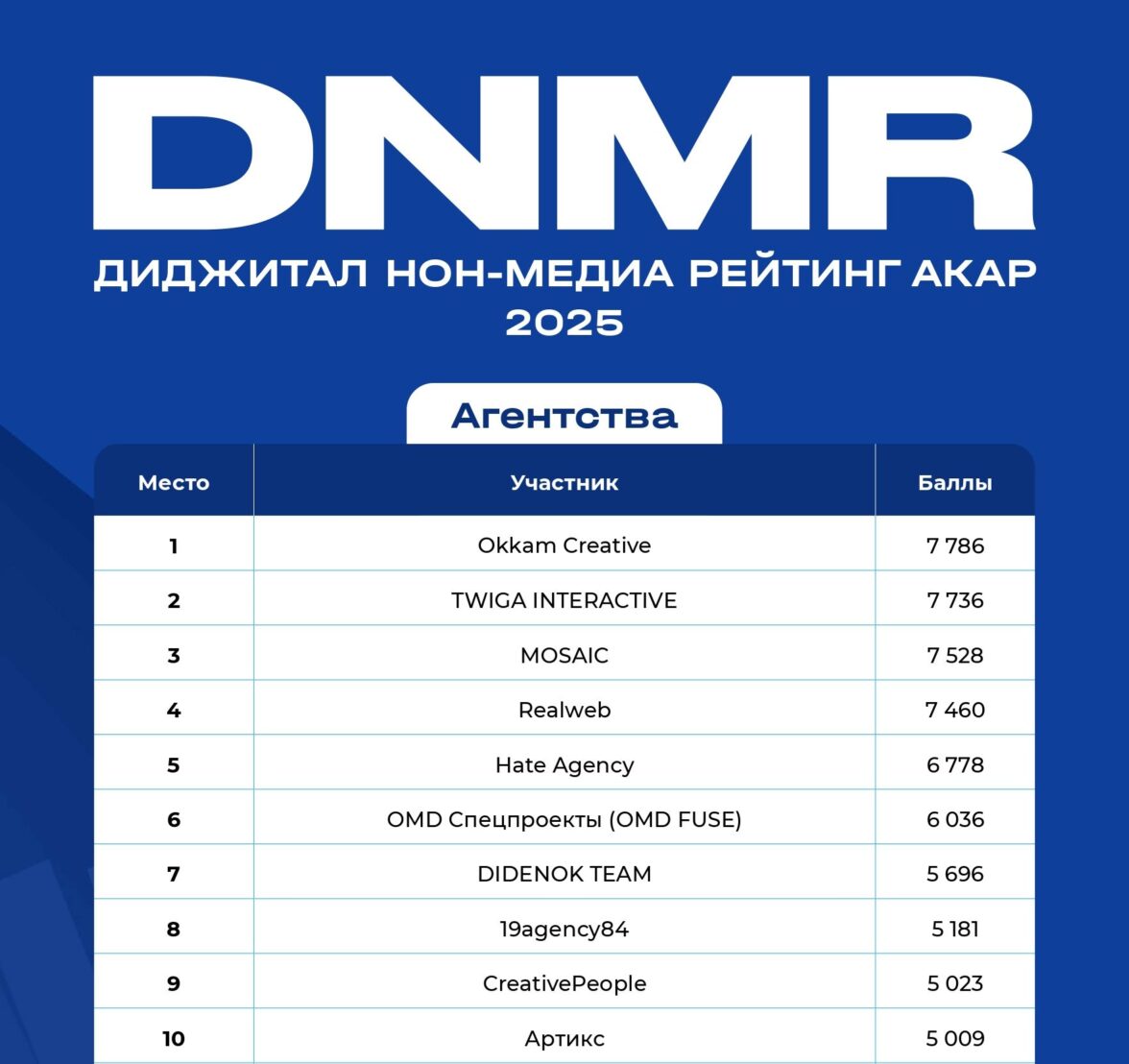 Результаты Диджитал Нон-Медиа Рейтинга (DNMR) 2025. Агентства