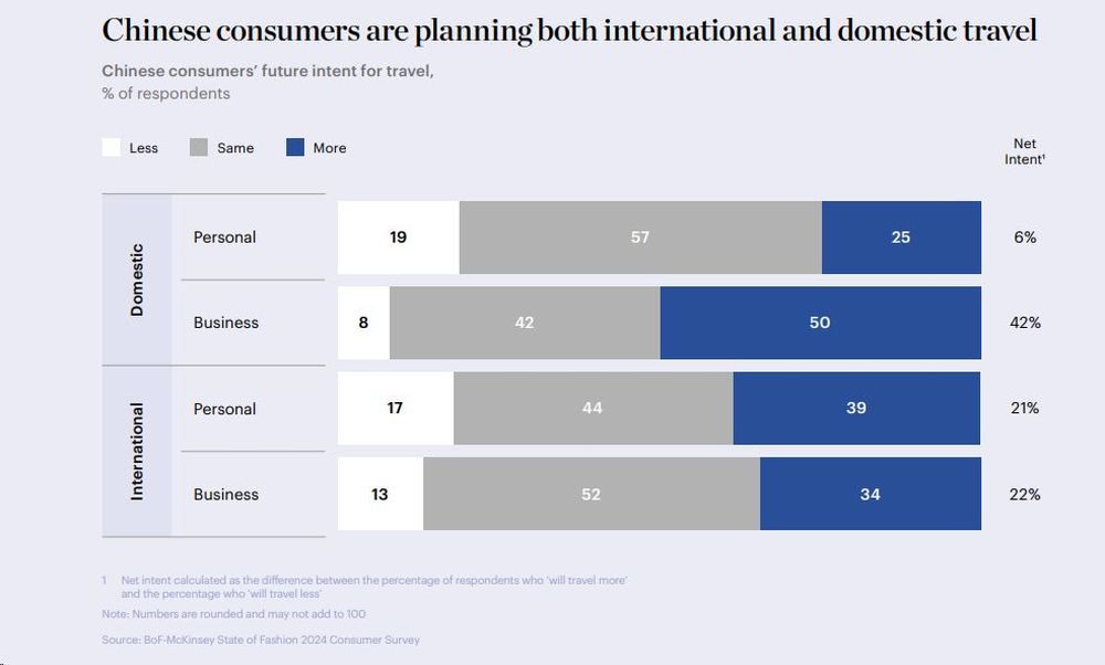 В 2024 году китайцы, которые до пандемии Covid-19 разгоняли мировой туризм и шоппинг, вновь вернутся на мировую арену, обещают McKinsey и BoF. В 2019 году на жителей Китая приходилась пятая часть ($255 млрд) от общемировых расходов на международный туризм. За год китайцы выехали за рубеж 166 млн раз. В 2023 году количество выездов китайцев из страны составит 70% от допандемийного уровня, прогнозируют авторы отчета, а по итогам 2024 года может достигнуть показателей 2019 года.